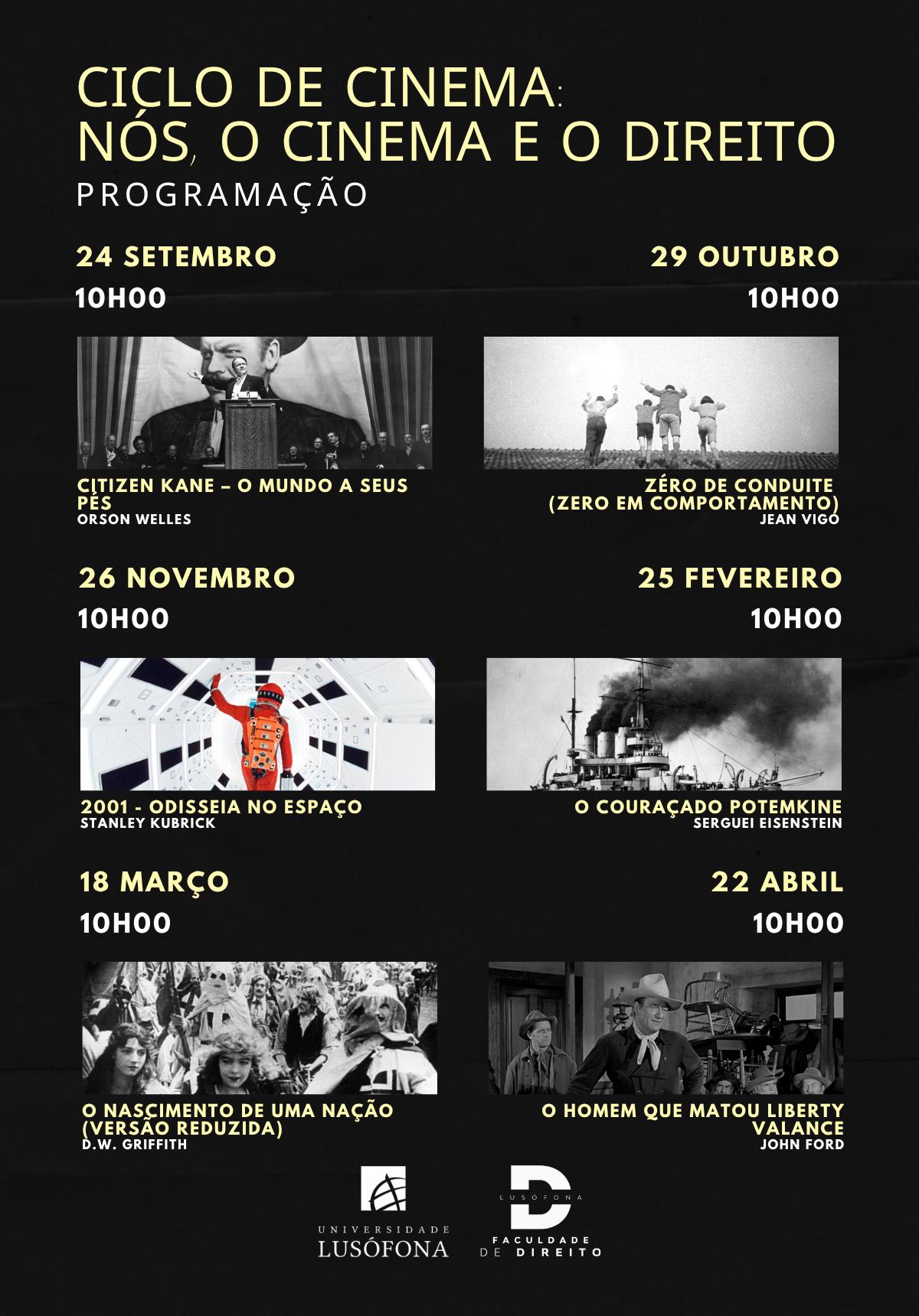 Nesta edição, será exibido o icónico filme Citizen Kane – O Mundo a Seus Pés (1941), realizado por Orson Welles, considerado uma das maiores obras da história do cinema. Através da vida enigmática de Charles Foster Kane, o filme convida à reflexão sobre o poder, a liberdade de imprensa, a verdade e os limites da ambição individual num contexto de análise crítica do Direito e da sociedade.