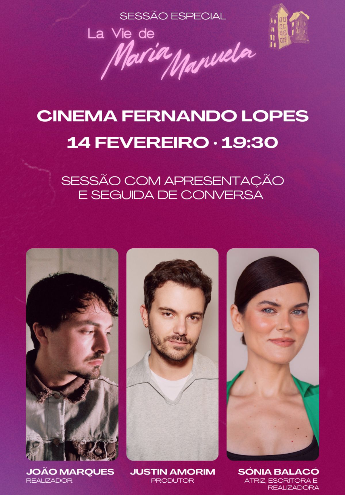 No dia 14 de fevereiro, em jeito de celebração de dia dos namorados, recebemos uma sessão especial do filme LA VIE DE MARIA MANUELA, com a presença do realizador João Marques, do produtor Justin Amorim e da actriz, escritora e realizadora, Sónia Balacó, para uma conversa após o filme.